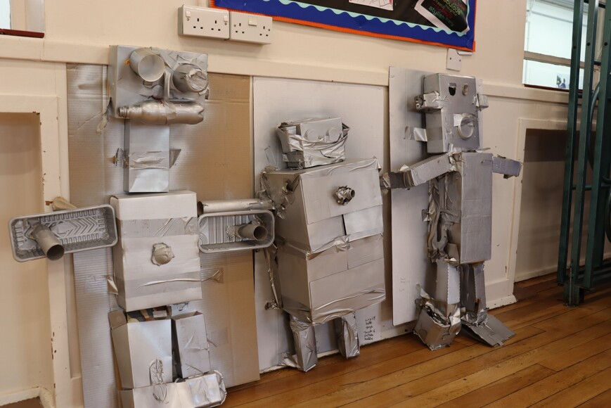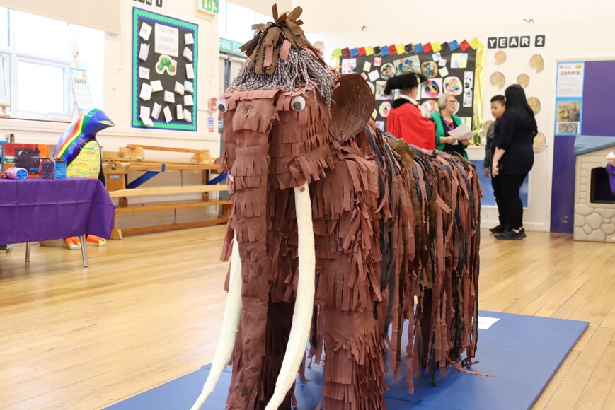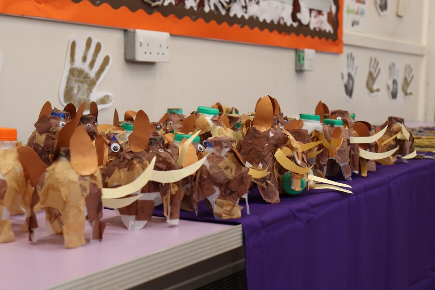 Artwork from pupils had different themes for each class, with different goals and aims for the children to develop towards, some were focused on mark making and others linked to music and movement. There was a range of different styles and mediums used in the exhibition, with paintings, sculptures and photography on display. Many of the pieces linked to different parts of the curriculum, including sculptures of “The Iron Man”, drawing inspiration from the book of the same name by Ted Hughes, and milk bottle mammoths that were inspired by the Go Go Discover trail recently organised throughout the county.