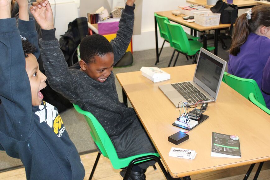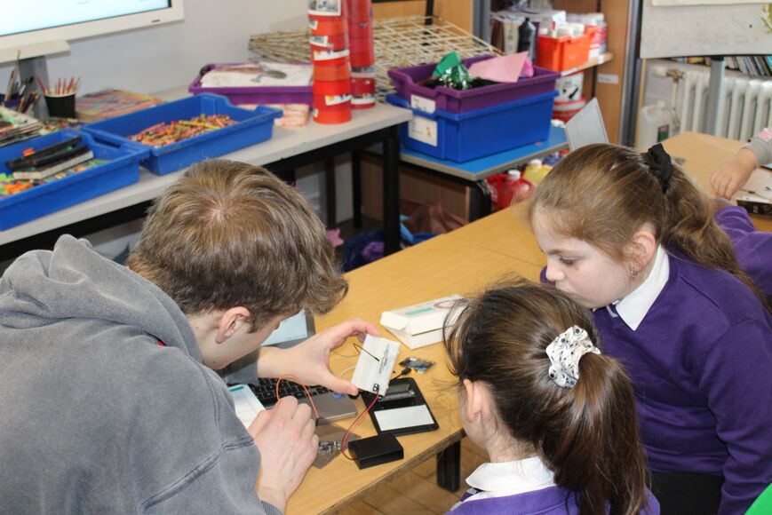 Light, Clap, Action! Pupils at Norwich Primary Academy work with students from STEM specialist college to hone their Computer Science skills from a young age